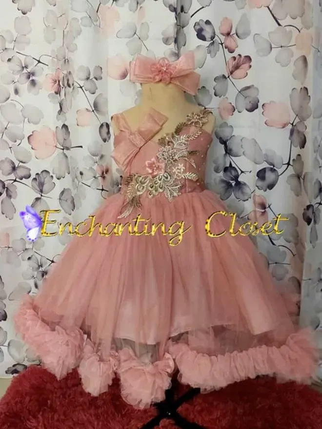 • Blush pink gown  attached with 3D laces , one ribbon on the left side shoulder.