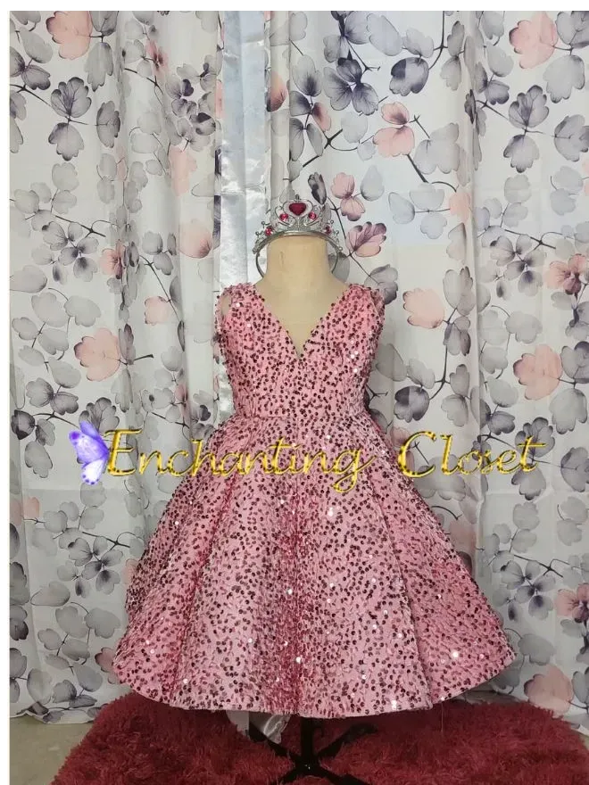 • Baby pink sequins in fabric umbrella gown