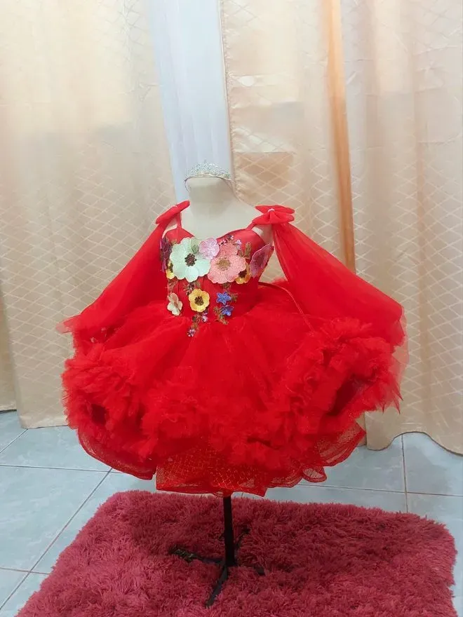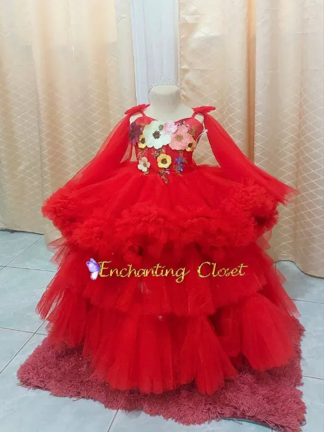 • Two ways red tulle, with colorful flower on top gown