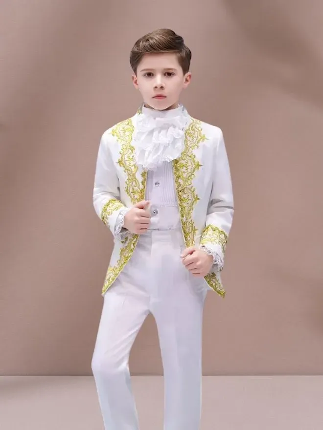 • White suits in europian style with gold laces