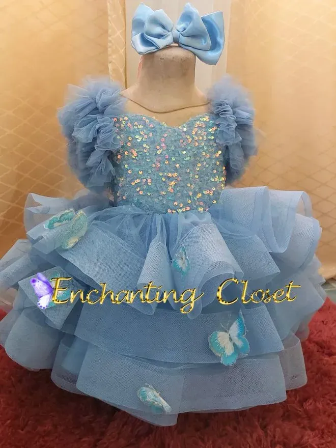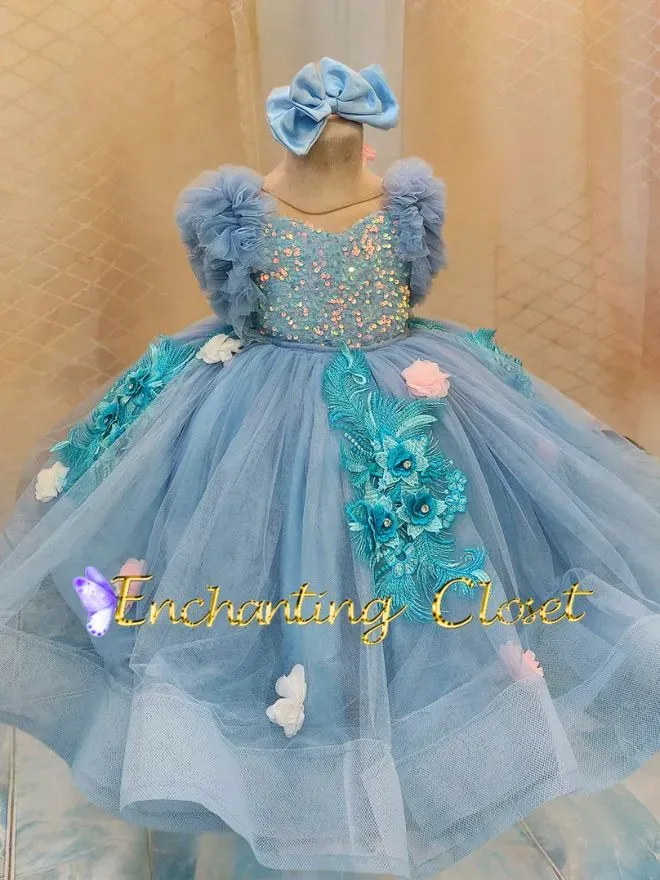 • FABRIC: VELVET POWDER BLUE SEQUINS AND SOFT TULLE