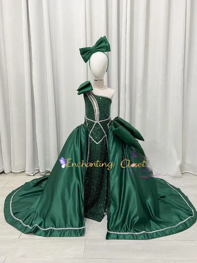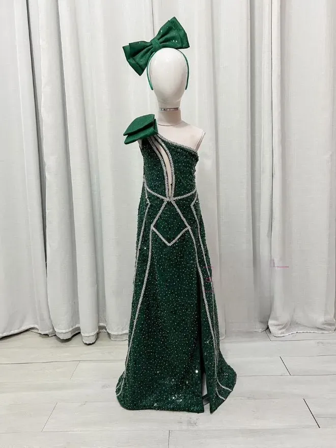 • Luxury serpentine gown and big ribbon on size and detachable trail